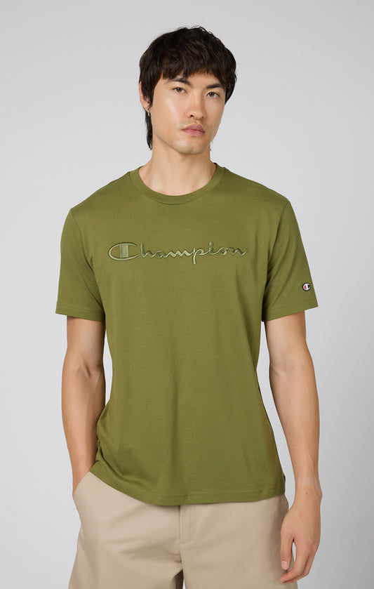 Champion Europe Men’s Crewneck Tee with Embroidered – Olive Green