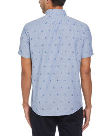 Original Penguin Oxford Re-Pete Print Short Sleeve Button-Down Shirt – Classic Blue