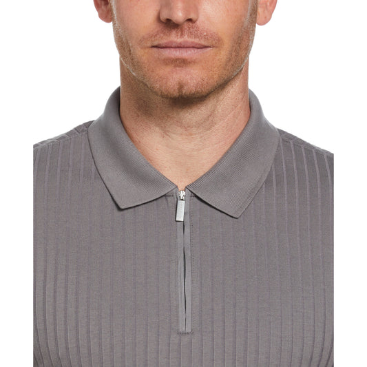 Perry Ellis Quarter Zip Ribbed Polo in Quiet Shade