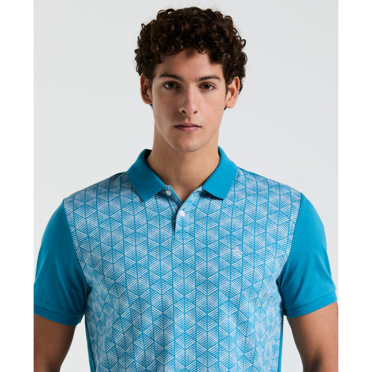 Original Penguin Mens Jacquard Geo Front Short Sleeve Polo Shirt Blue Topaz