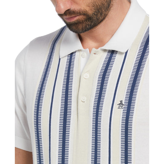 Original Penguin Mens Vertical Stripe Johnny Collar Sweater Polo Shirt Bright White