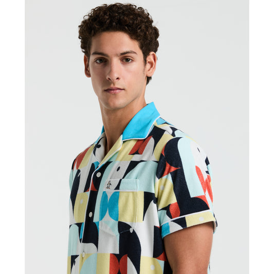 Regular price ₱5,280.00 PHPRegular priceUnit price / perSale price ₱5,280.00 PHPOriginal Penguin Deco Camp Terry Short Sleeve Woven Shirt in Horizon Blue