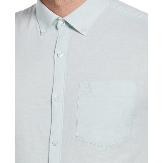 Original Penguin Linen Blend Short Sleeve Button-Down Shirt Surf Spray