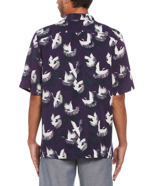 Original Penguin Cranes Print Short Sleeve Button-Down Shirt – Grape