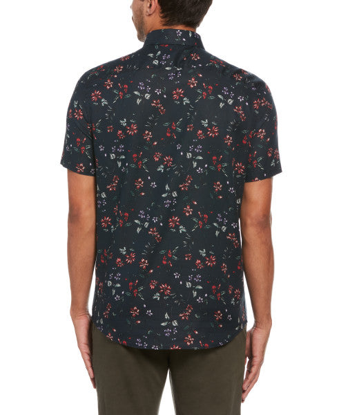 Original Penguin Oxford Floral Print Short Sleeve Button-Down Shirt - Dark Sapphire