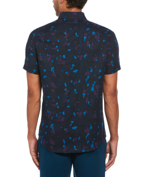 Original Penguin Camo Pete Printed Short Sleeve Button-Down Shirt – Dress Blues