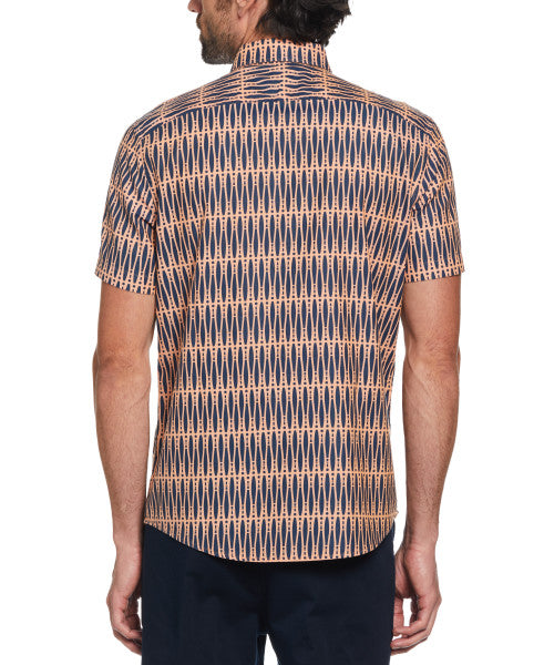 Original Penguin Oxford Allover Bowling Pins Print Short Sleeve Button-Down Shirt – Amberglow