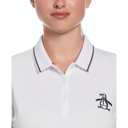 Original Penguin Womens Short Sleeve Organic Veronica Polo Pointed Collar Bright White