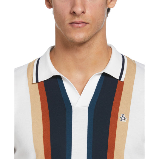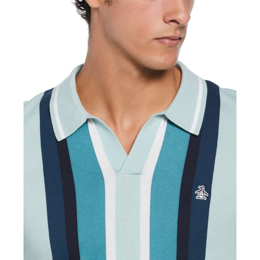 Original Penguin Vertical Stripe Johnny Collar Sweater Knit Polo Shirt Blue Haze