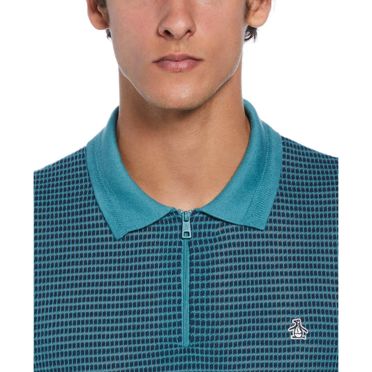 Original Penguin Jacquard Johnny Collar Short Sleeve Sweater Polo Sea Pine