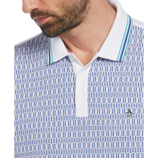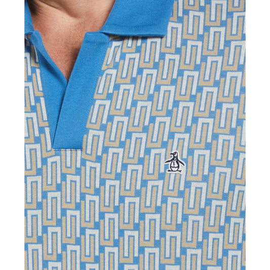 Original Penguin Mens Jacquard Geo Print Johnny Collar Short Sleeve Polo Shirt Vallarta Blue