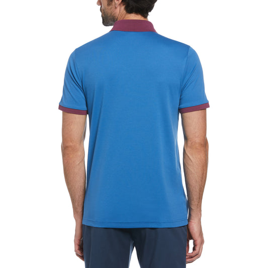 Original Penguin Mens Jacquard Geo Front Short Sleeve Polo Shirt Blue Topaz