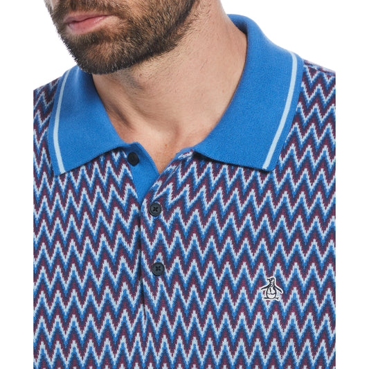 Original Penguin Mens Cotton Jacquard Short Sleeve Sweater Polo Star Sapphire