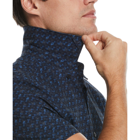 Perry Ellis Total Stretch Geo Print Short Sleeve Button-Down Shirt in High Tide