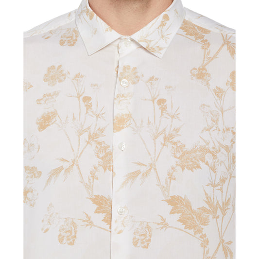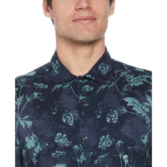 Perry Ellis Cotton Floral Print Long Sleeve Button-Down Shirt in Ink