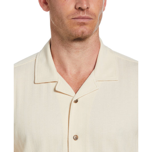 Perry Ellis Textured Stripe Camp Short Sleeve Button-Down Shirt in Birch