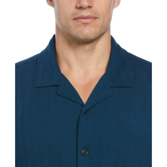 Perry Ellis Textured Stripe Camp Short Sleeve Button-Down Shirt in Gibraltar Sea