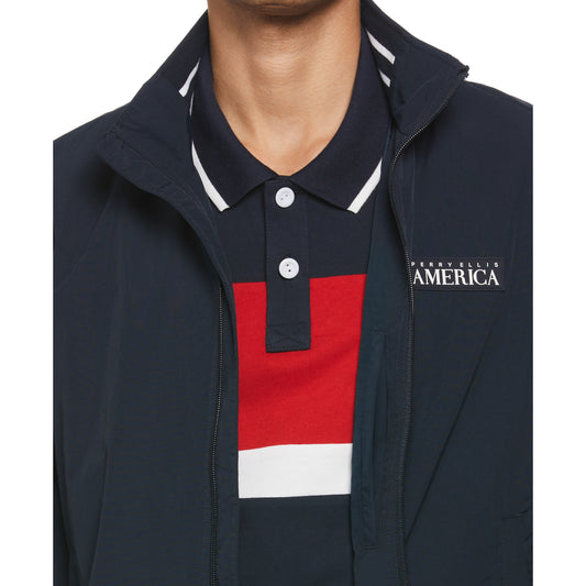 Perry Ellis Nylon Mock Neck Sailing Jacket in Dark Sapphire