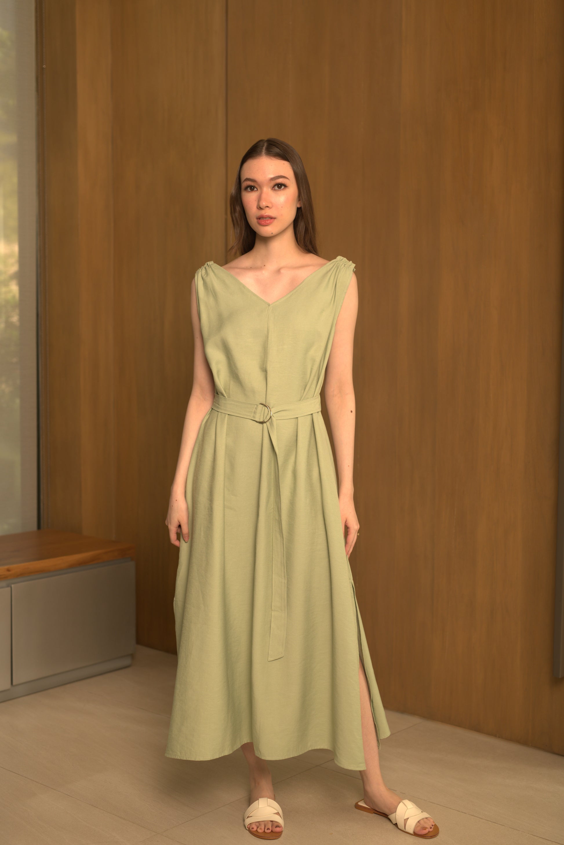 The Between Days Felicity Dress in Sage offers sophistication with its refined silhouette and classic accents. Crafted with meticulous attention to detail, this dress features a flattering waistline enhanced by a coordinating belt that creates a polished, defined shape. The sage hue provides versatility for both professional settings and special occasions, while the timeless design ensures enduring style value.