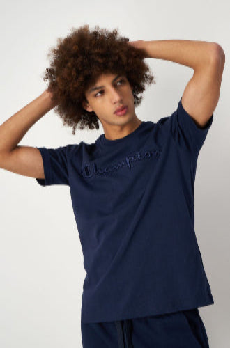 Champion Europe Men’s Crewneck Tee with Embroidered – Dark Blue