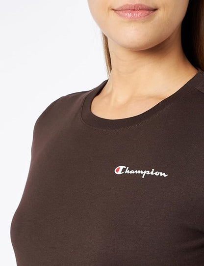 Champion Europe Women Crewneck with Left Chest Logo Tee – Dark Brown