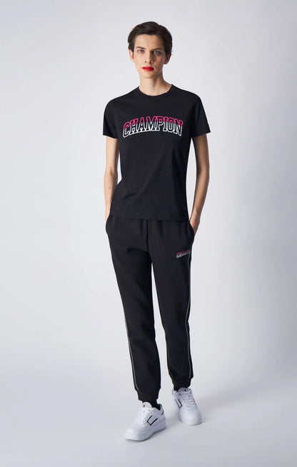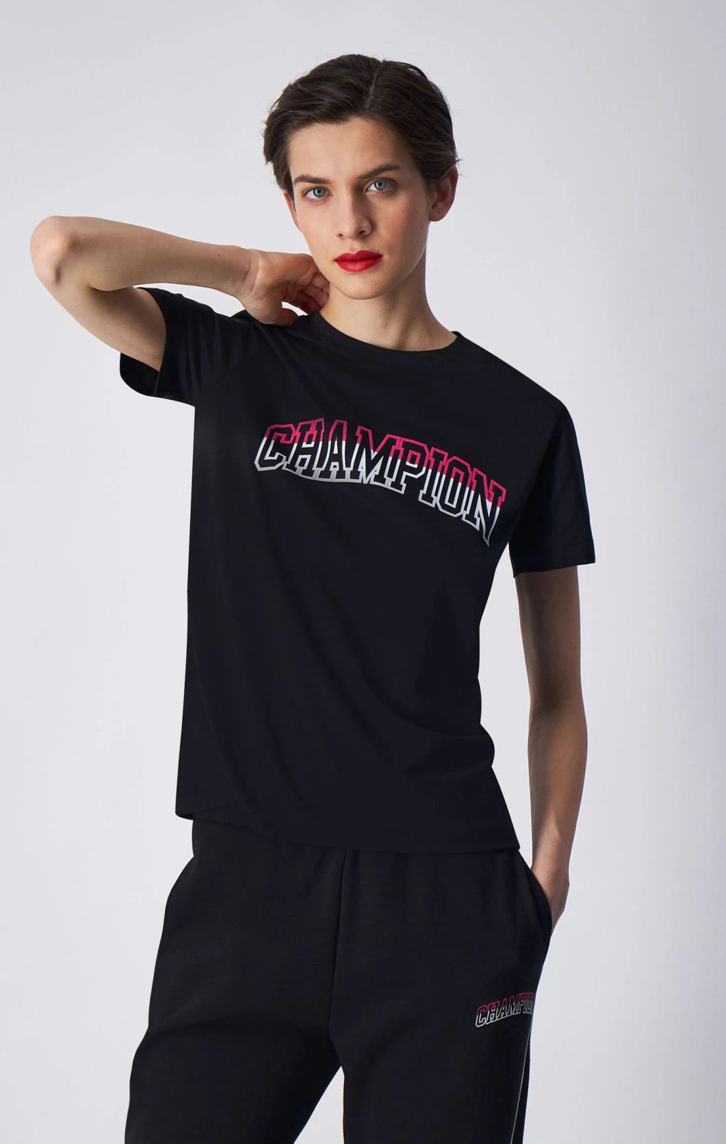 Champion Europe Women Full Script Logo Crewneck Tee – Black