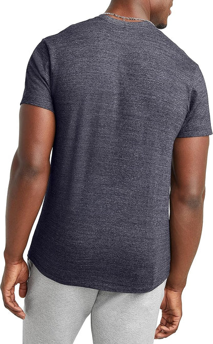 The Powerblend® slim-fit t-shirt for men is the soft and comfortable tee you've been waiting for. Made from a comfortable cotton blend, this t-shirt is made to last. Details like the ribbed collar and double-needle constriction throughout add structure for a quality fit and extra soft feel. With its sleek and modern design, this t-shirt is perfect for any occasion. Whether you're dressing it up or down, it's the ultimate addition to your wardrobe. Classic script spans the chest while the iconic C logo hits at the sleeve for a look made for a Champion.