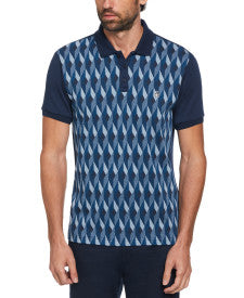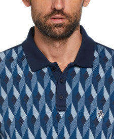 Original Penguin Jacquard Front Diamond Geo Print Short Sleeve Polo Shirt – Dress Blues