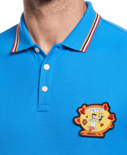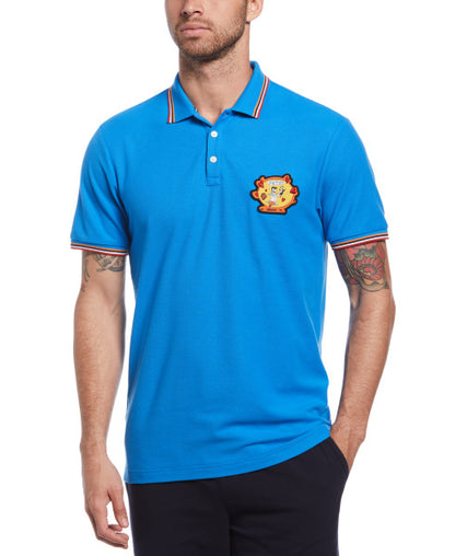 Stand out in this colorful Original Penguin men's polo shirt. A left chest graphic featuring the work of London-based artist Jethro Haynes and multi-color tipping at the collar and cuffs give this polo top its fashionable flair. It's crafted from breathable 100% organic cotton with textured pique fabrication for a premium look and feel. The ribbed polo collar and three-button placket provide timeless polo style and the flattering slim fit keeps it contemporary.