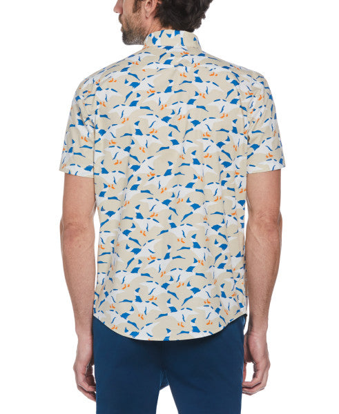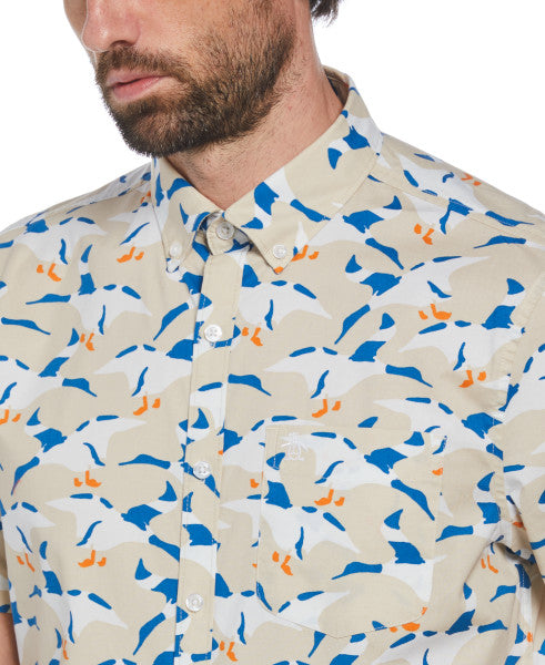Original Penguin Short Sleeve Poplin AOP Birds – Oatmeal