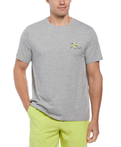 Original Penguin US Men’s Heathered Pickleball Graphic Short Sleeve Tee Shirt - Quiet Gray Heather