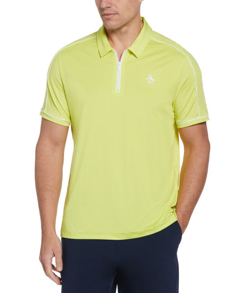 Original Penguin US Men’s Piped Performance 1/4 Zip Tennis Short Sleeve Polo Shirt – Limeade