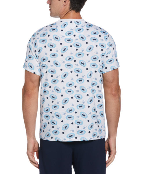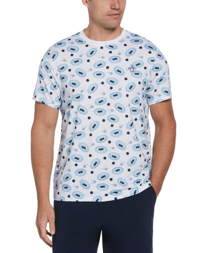 Original Penguin US Men’s Tennis Print Short Sleeve Crew Neck Tee Shirt - Bright White