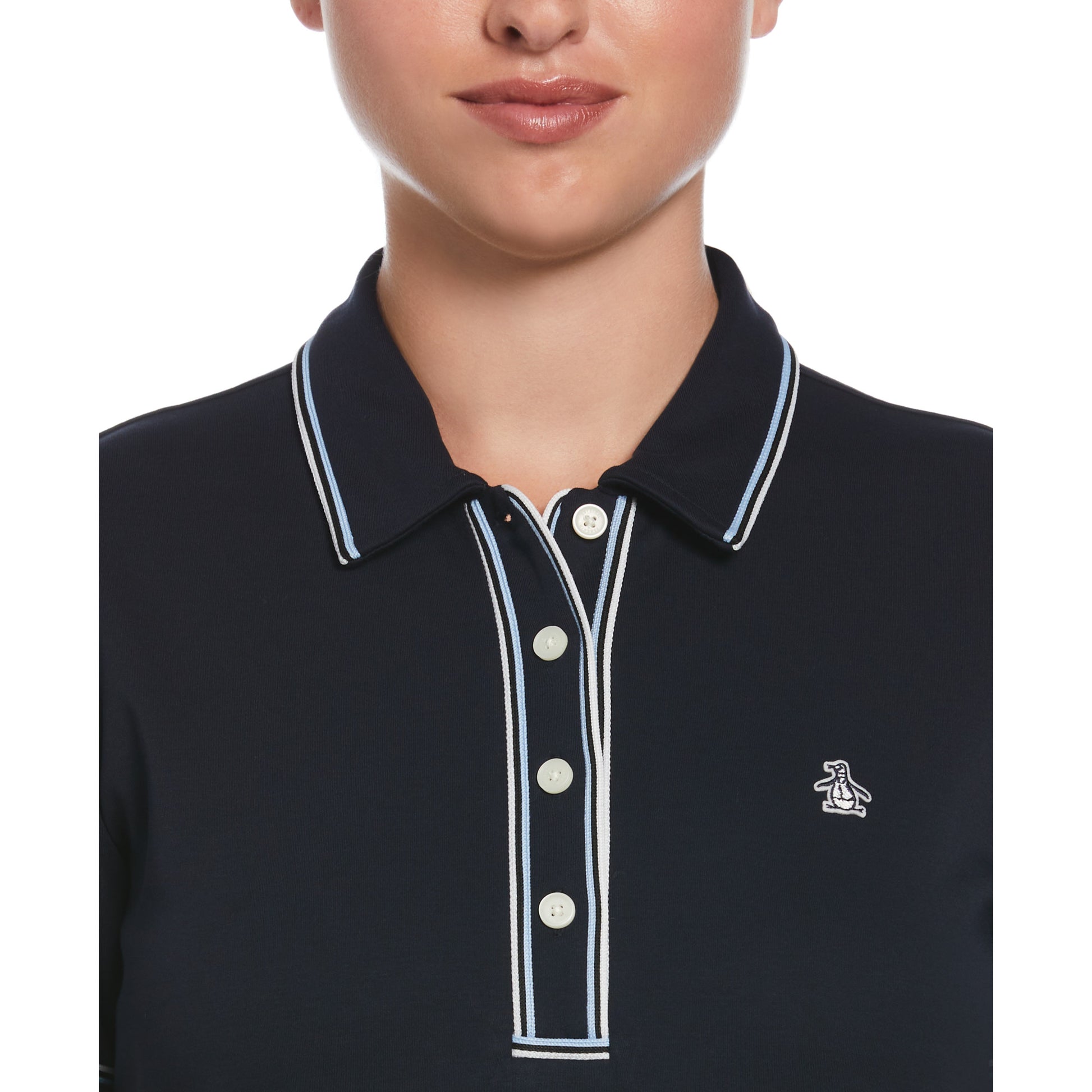 Elevate your casual wear with sustainable fashion with this women's polo from Original Penguin. Crafted from 100% organic cotton, this polo shirt is an eco-friendly choice. It also features interlock fabrication for natural stretch and a comfortable fit and feel while the contemporary silhouette and piping details add a refined touch.