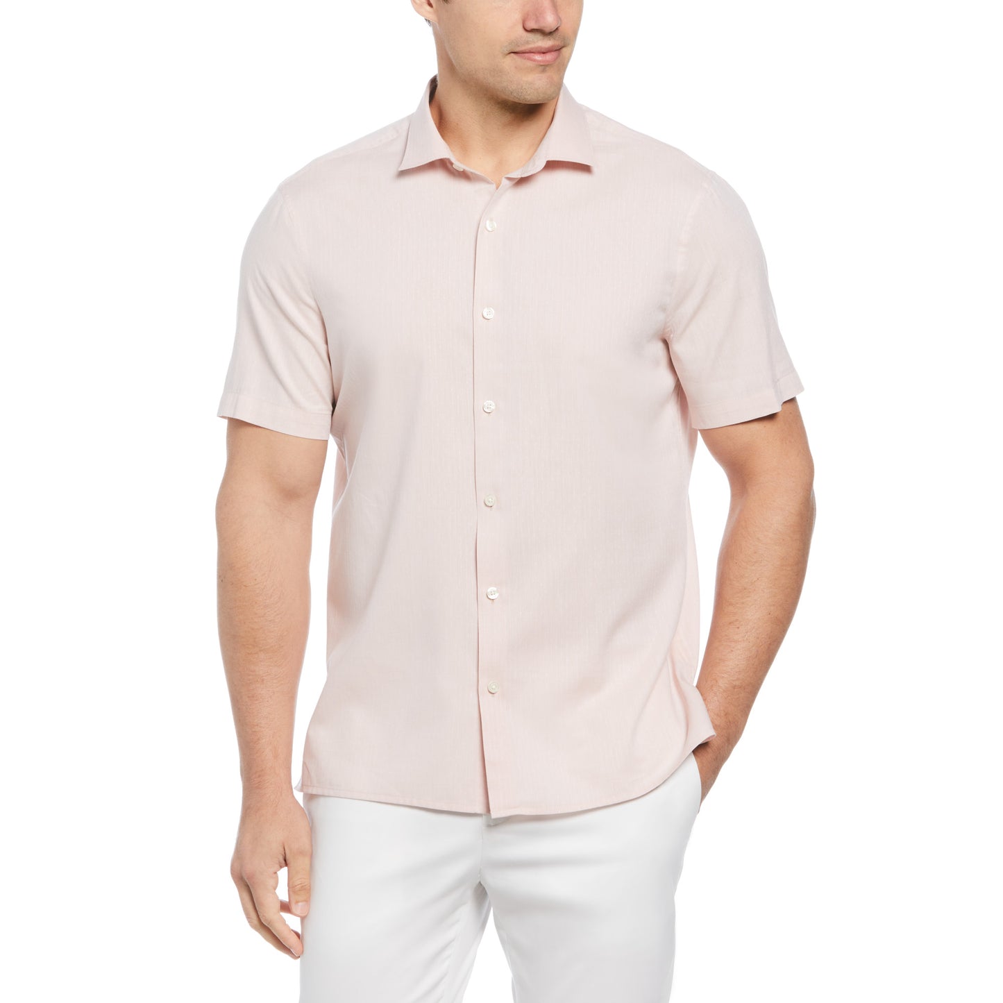 Perry Ellis Dobby Viscose Short Sleeve Button-Down Shirt in Misty Rose