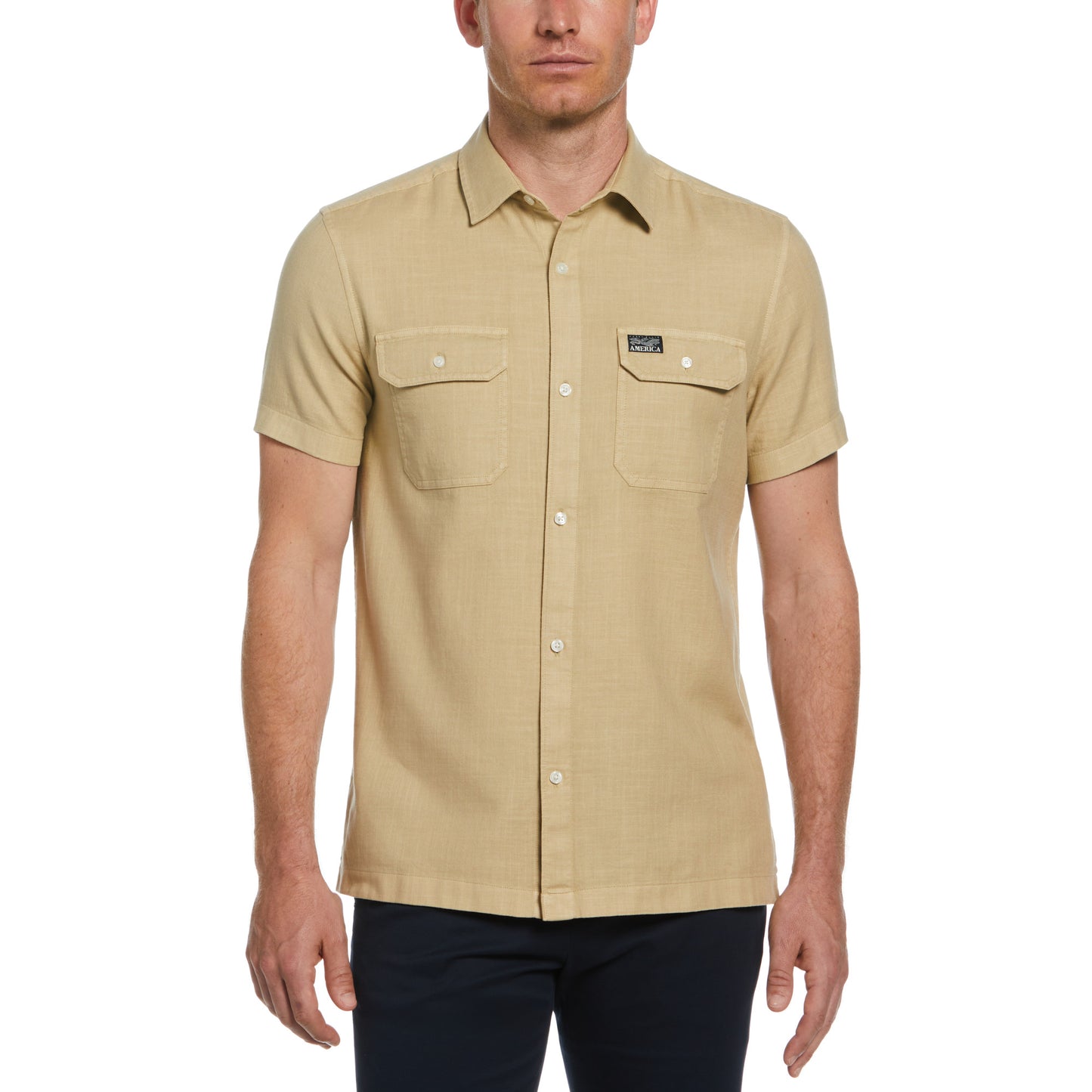 Perry Ellis Slub Twill Short Sleeve Button-Down Shirt in Twill